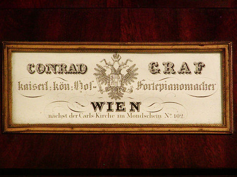 Conrad Graf, c. 1828-1829, Vienna. Graf's pianos were held in the highest regard by pianists playing in Vienna. Graf's instruments were played by Chopin, Mendelssohn, Robert and Clara Schumann, and, later, Liszt. This particular instrument is reputed to have belonged to a distinguished family of Viennese music patrons, the Sonnleithners, who would have had the best the builder could offer. It is in almost original condition, with all but a few of its original strings.